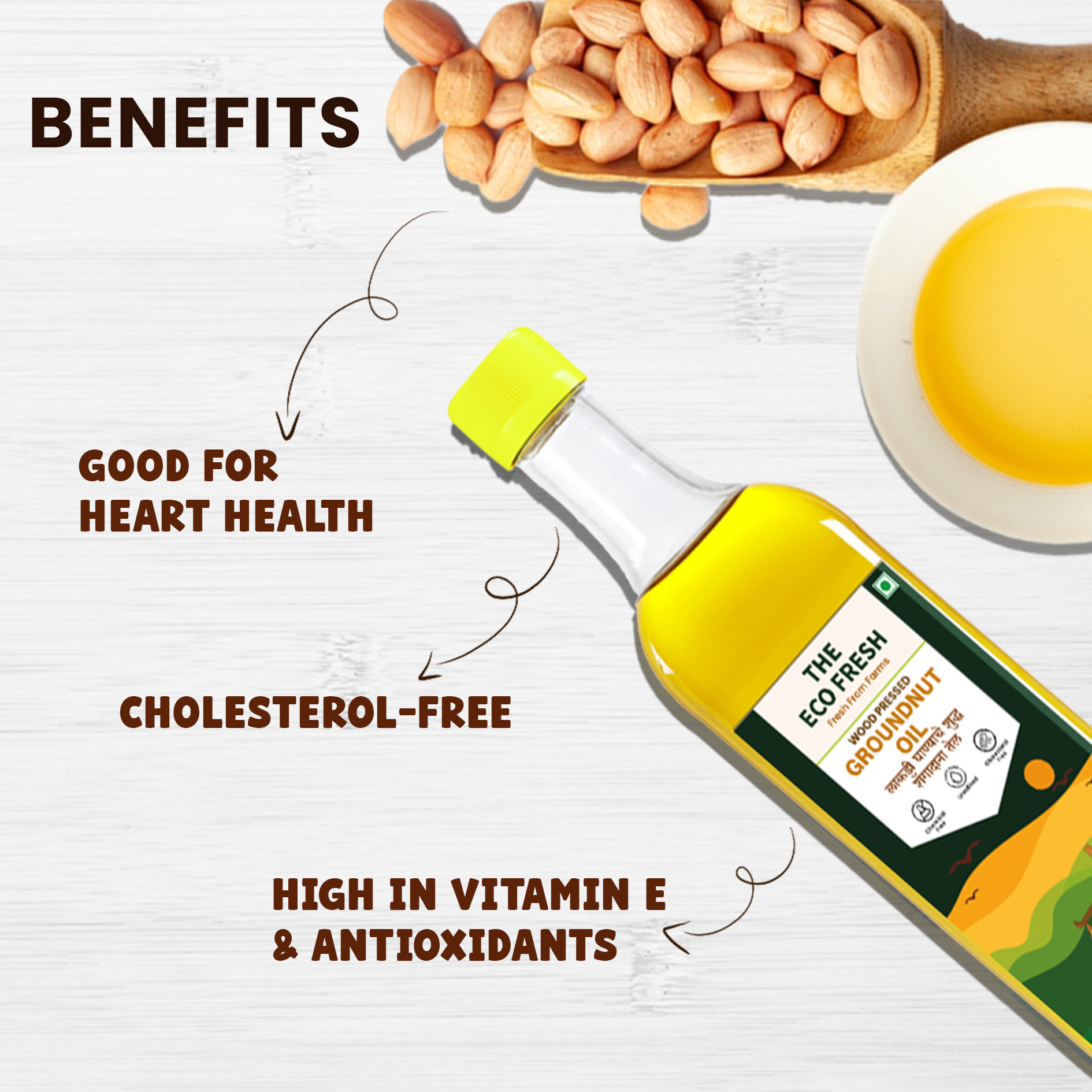 refined oils. Here are the key benefits of using wood-pressed groundnut oil: